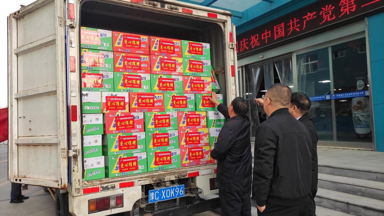 上午九时,德尔康医药科技有限公司销售总监刘建省一行将生活物资送往嵩县德亭镇卫生院。该批物资包括方便面100箱、火腿肠100箱、饮用水100件。