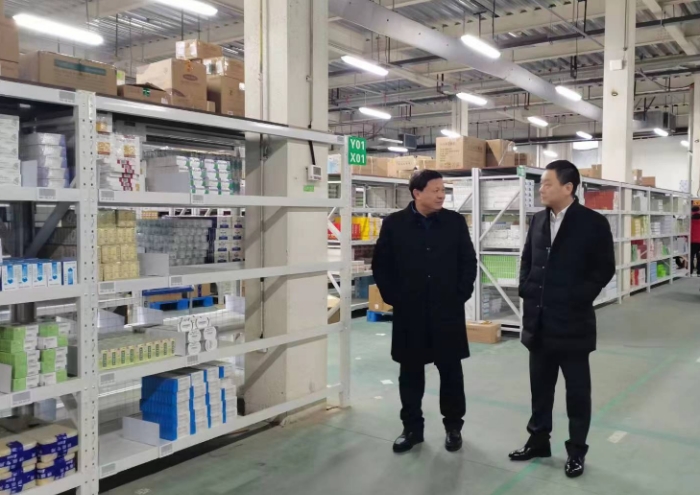 德尔康医药科技王忠敏先生与“1药网”李有淳先生在河南壹号仓库现场