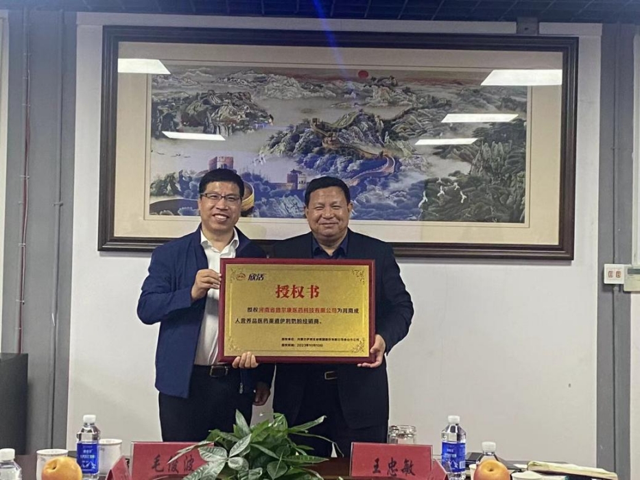 会后,毛俊波总经理为王忠敏董事长颁发了“河南成人营养品医药渠道伊利奶粉经销商”授权书,标志着伊利集团成人奶粉正式进军省内医药渠道。德尔康医药科技公司会发挥行业资源和渠道配送的综合优势,做好伊利成人奶粉在省内医药渠道的支持与服务工作。