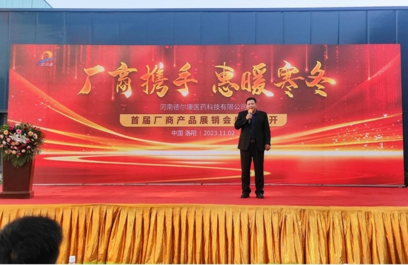 展销会在热情洋溢的氛围中拉开帷幕。会议第一项议程由河南德尔康医药科技有限公司董事长助理、河南壹号医药有限公司总经理万高飞向各位来宾致欢迎辞。