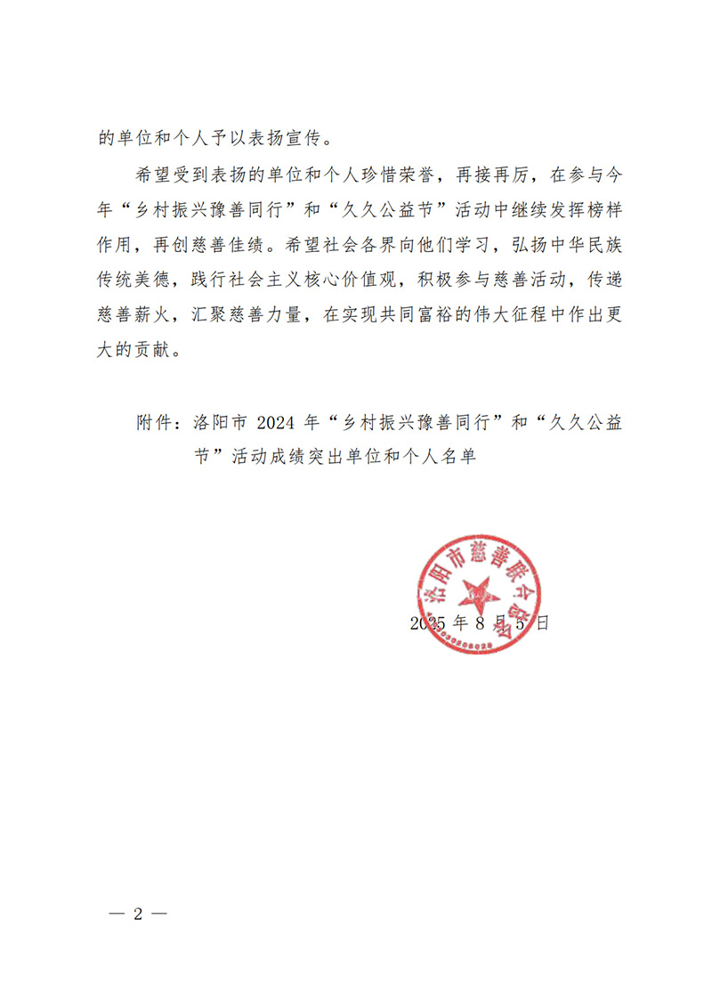来源:洛阳市慈善联合总会办公室 发表时间:2025/8/11 9:45:15 点击次数:【390】