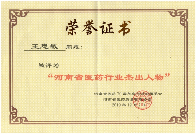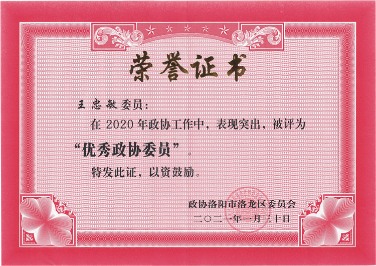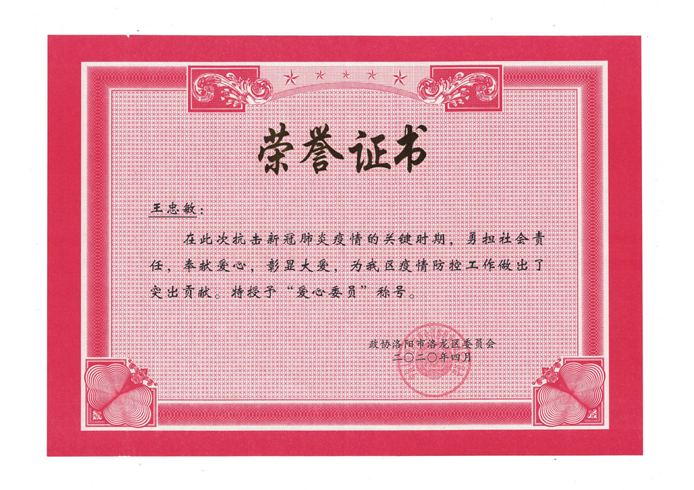 公司总经理王忠敏先生荣获抗疫先进个人荣誉称号。